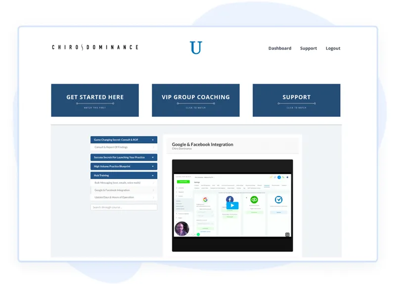 In Chiro Dominance U, we provide easy-to-follow along with training videos on how to use your Hub to reach more patients and keep them coming back.